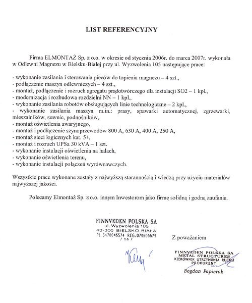 | Kompleksowa instalacja oświetlenia i prac elektroenergetycznych w hali Odlewni Magnezu w Bielsku- Białej. |