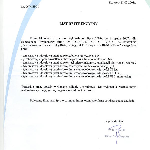| GPZ Sporysz -GPZ Jeleśnia -budowa linii światłowodowej o dł. ok. 10 km wraz z odgałęzieniami. |