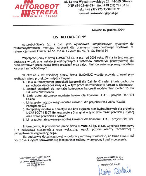 | Teksid Poland - montaż oświetlenia 20 centrów obróbczych wraz z całą instalacją sterowników komputerowych i wizualnych. |