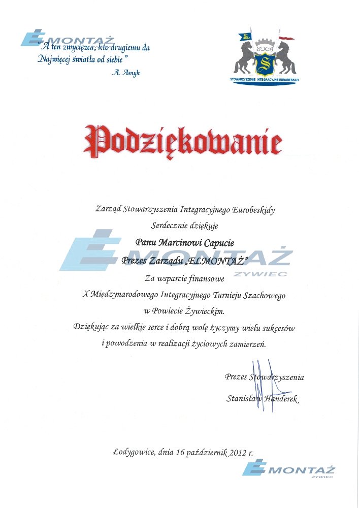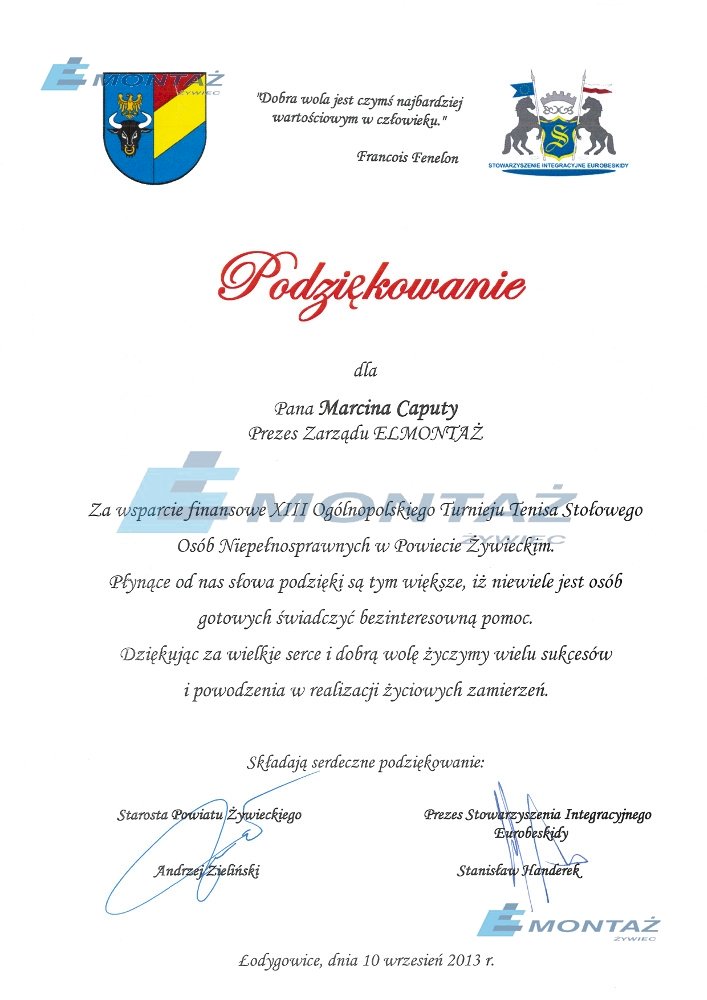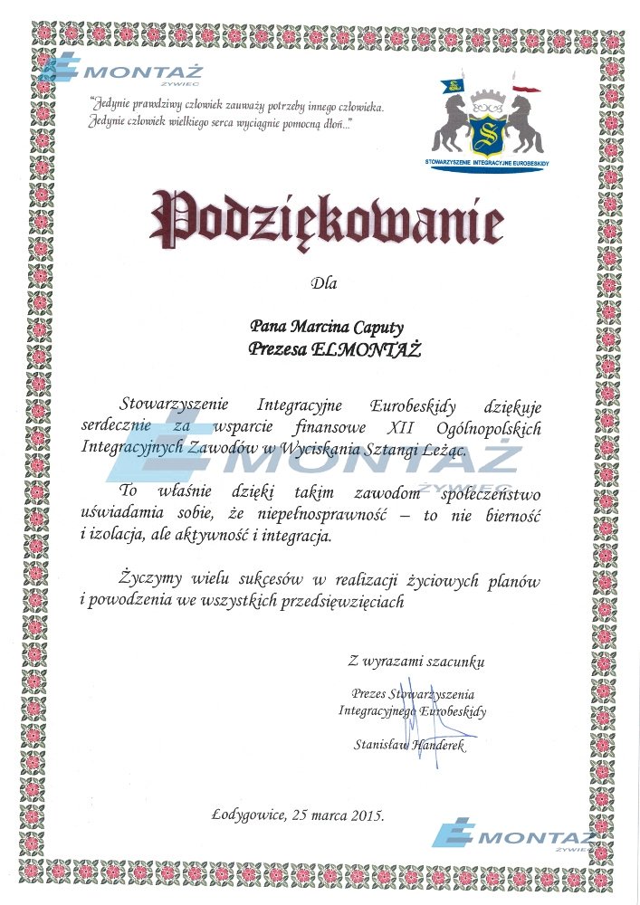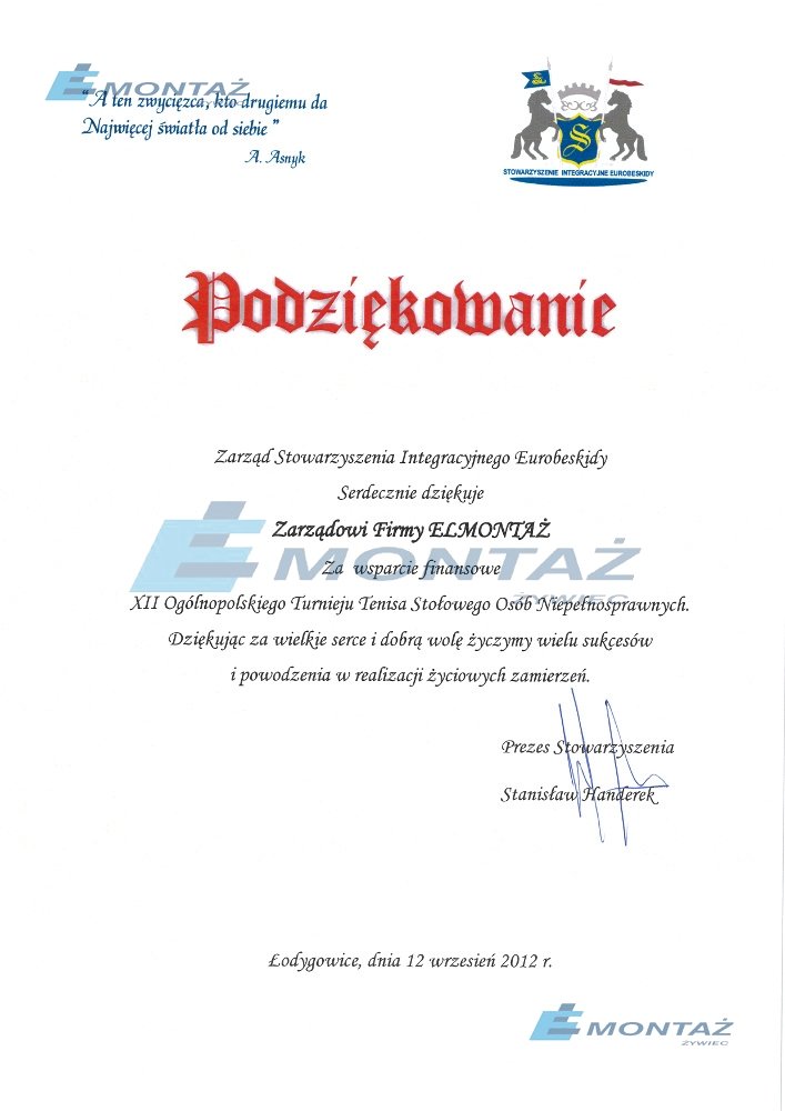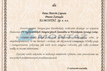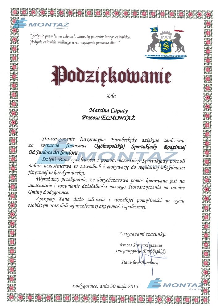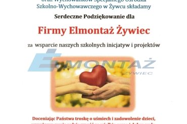 Elmontaż Sp. z o.o. od lat angażuje się w działalność prospołeczną i charytatywną. Z dbałością i troską reagujemy na problemy potrzebujących, dlatego też każdego roku staramy się odpowiadać na prośby jakie otrzymujemy, przede wszystkim z lokalnych środowisk. Wspieramy wiele inicjatyw, w głównej mierze dotyczące dzieci i młodzieży.